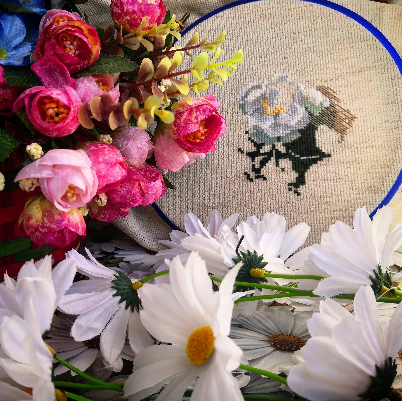 И на этом выдохнула, поскольку зимние дизайны в моих процессах наконец-то закончились. И я снова активно взялась за шиповник, вот не отпускал меня этот процесс от себя надолго и всё тут. Да и в целом я заметила, что в этом году меня уже не так "кидает" между процессами, хочется вышивать 2-3 работы и не отвлекаться на другие, может это потому что я больше отвлекаюсь на вязание и другие рукоделки. Хотя с тем же шиповником заметила интересный момент: после того как переставлю пяльцы и передо мной предстаёт чистый участок канвы, то я несколько дней не могу взяться за этот процесс, а вот когда на этом участке уже появились крестики, то я просто не могу от него оторваться, так хочется зашить всё это пустое пространство. Вот так то не беря в руки этот процесс по несколько дней, то запойно вышивая его я добралась до финиша этой работы: